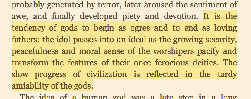 “Religion does not prosper under prosperity; the senses liberate themselves from pious restraints, and formulate philosophies that will justify their liberation.”