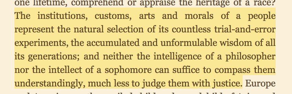 The institutions, conventions, customs and laws that make up the complex structure of a society are the work of a hundred centuries and a billion minds; and one mind must not expect to comprehend them in one lifetime, much less in twenty years.