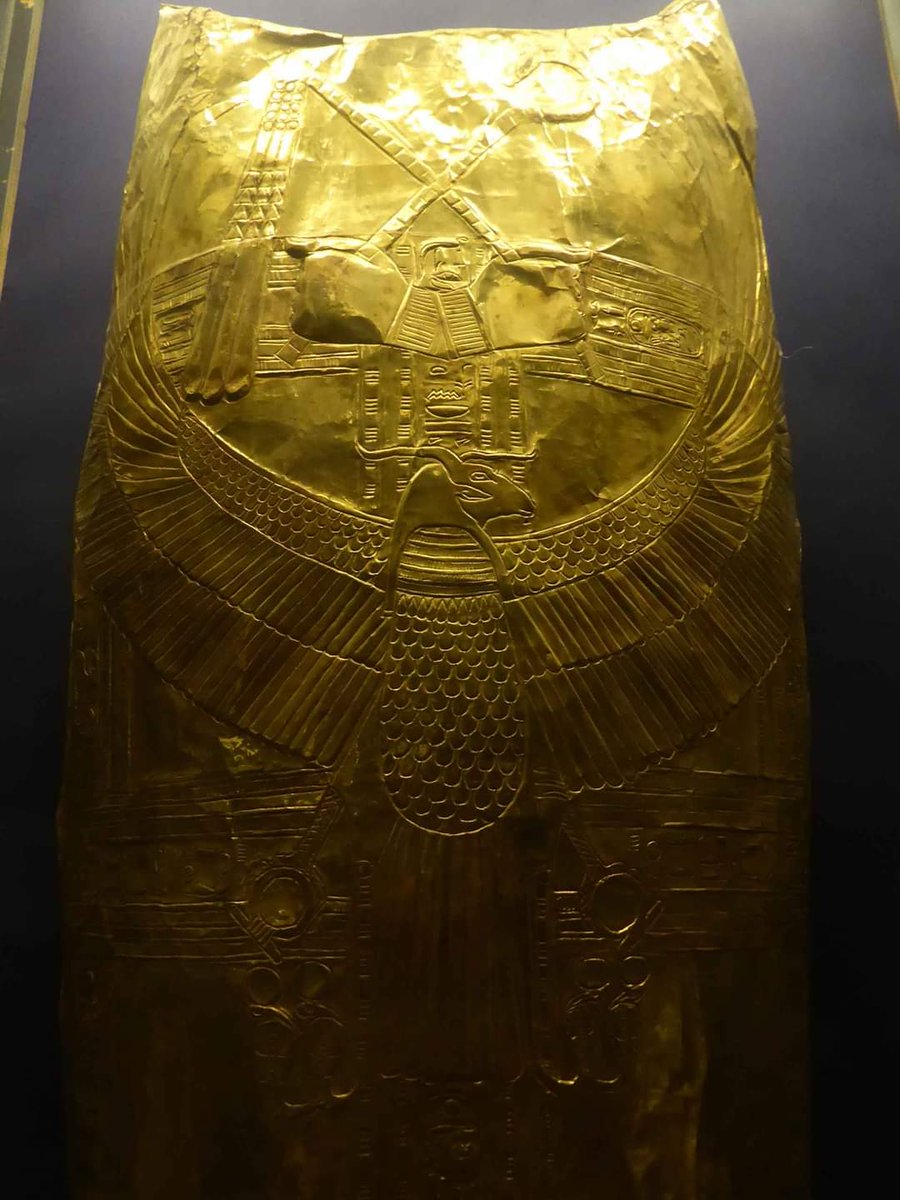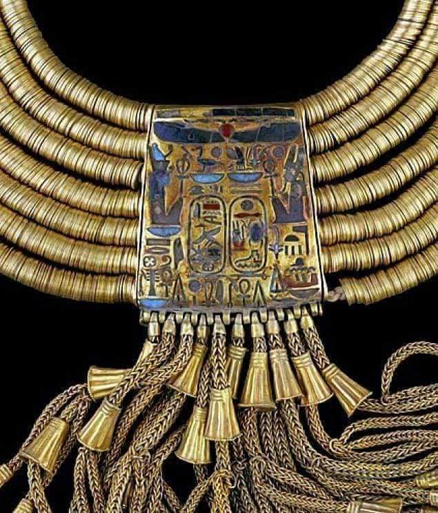 كما عُثر علي قلادة الجعران المجنح ووزنها 14 كيلو من الذهب خالص