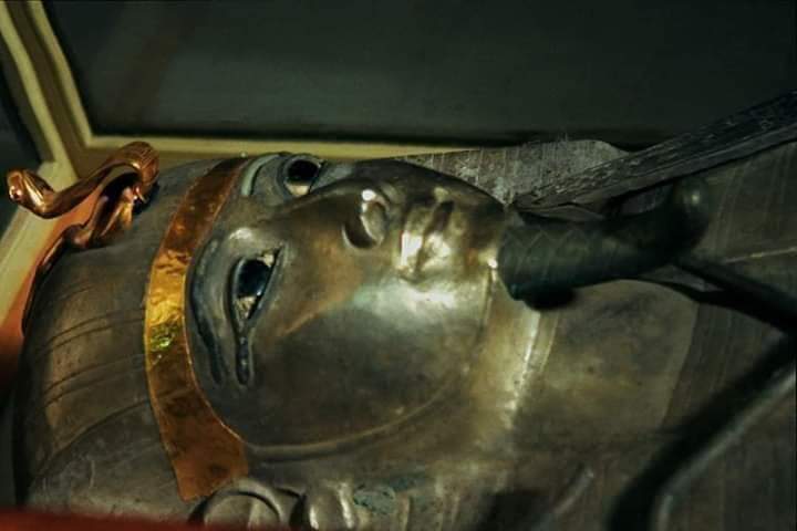 وكان التابوت مُطعم بالذهب والأحجار الكريمه