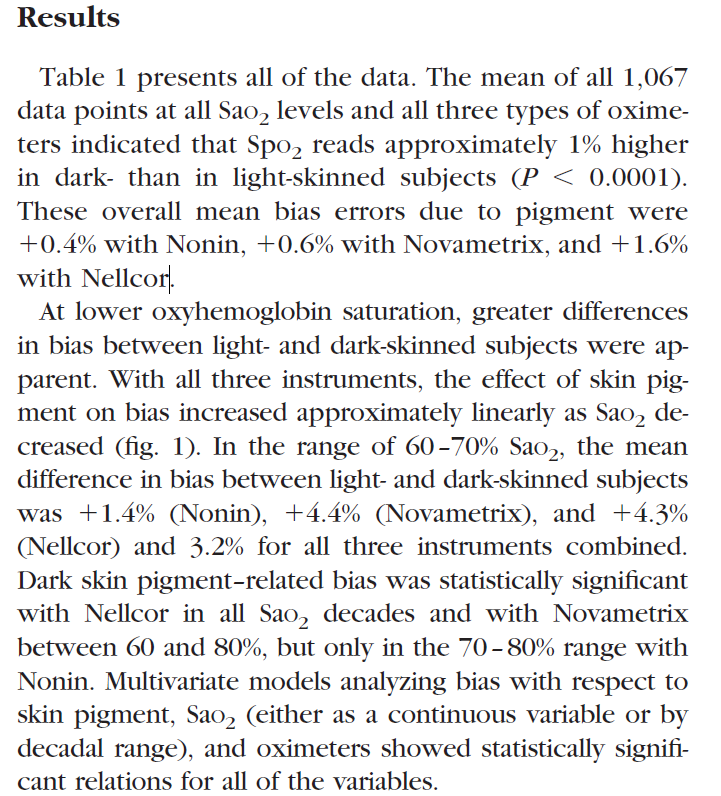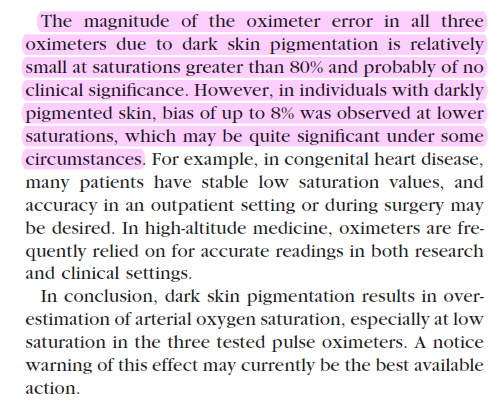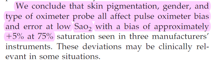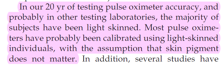 1987: Cecil reported lower accuracy of oximeters in patients with pigmented skin