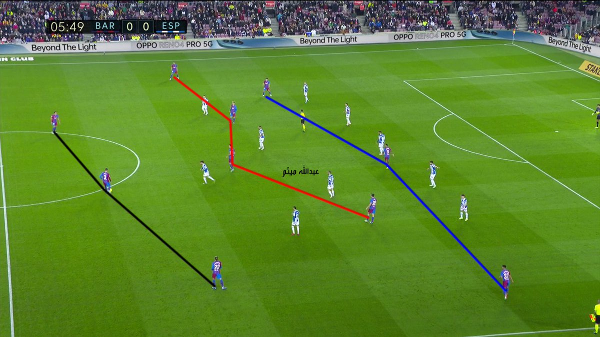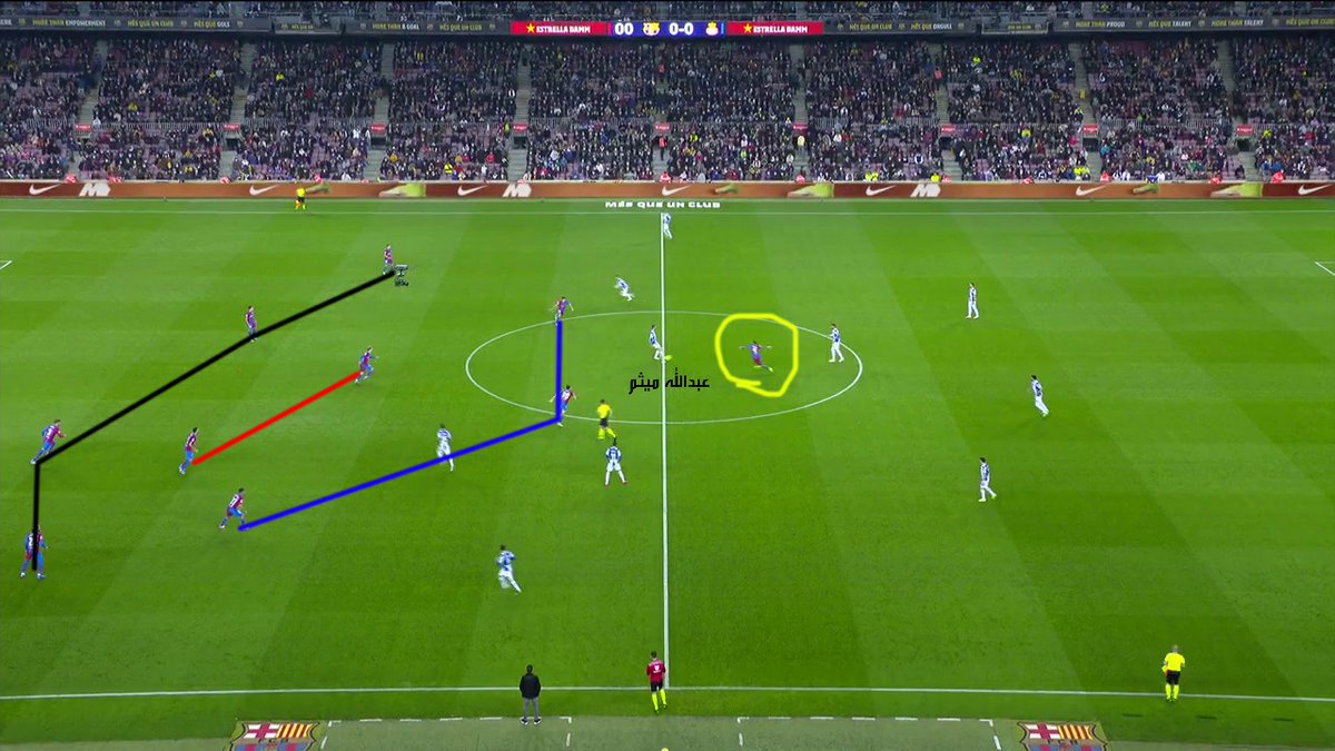 نجح برشلونة بتشكيل مثلثلات على الاطراف للزيادة العددية و التغلب في المواجهات.