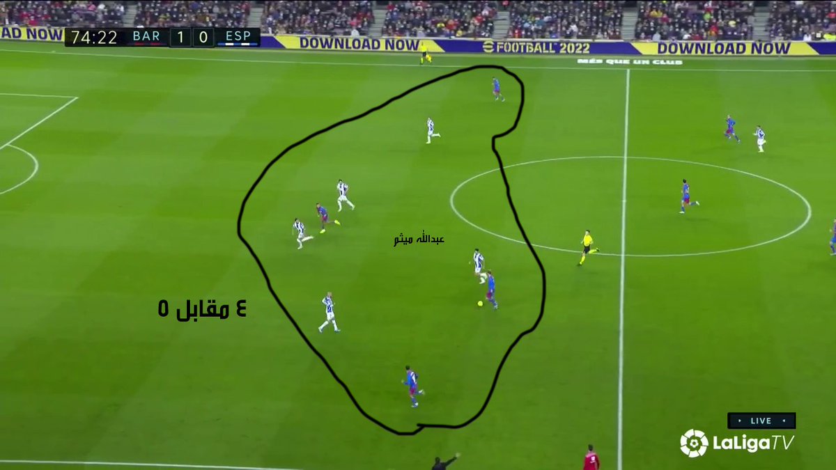 4- كما قلت سابقا ف تشافي مهووس بالاستحواذ و للنجاح في ذلك فعليك ان تتفوق على عدد لاعبين الخصم في كل مركز.