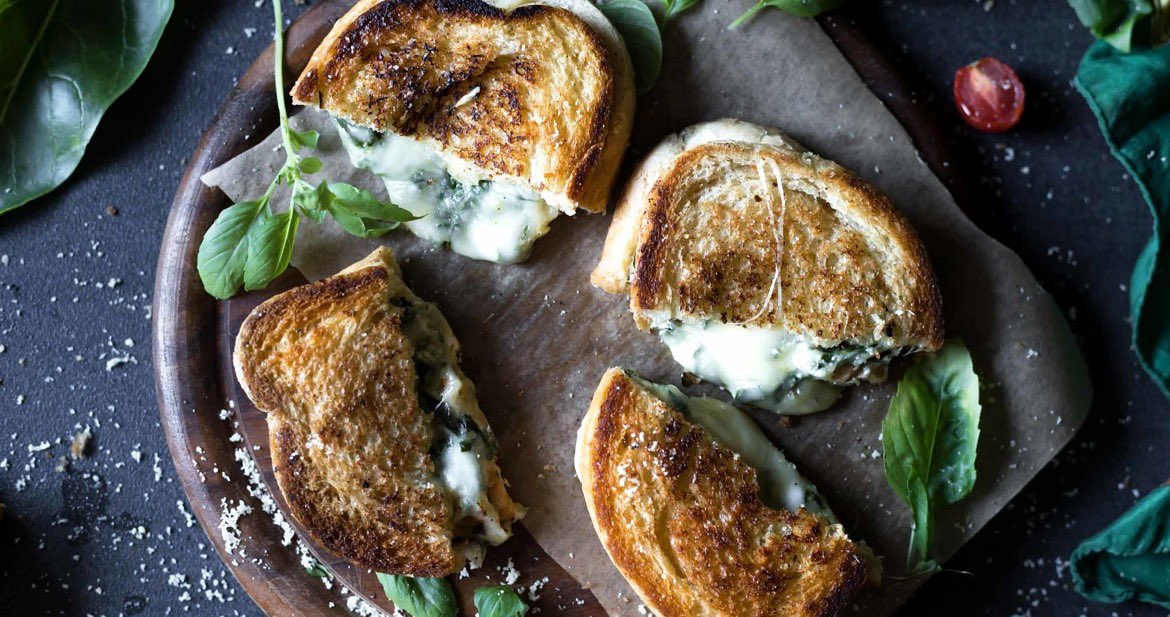ساندوتش جبنة مشوية مع السبانخ