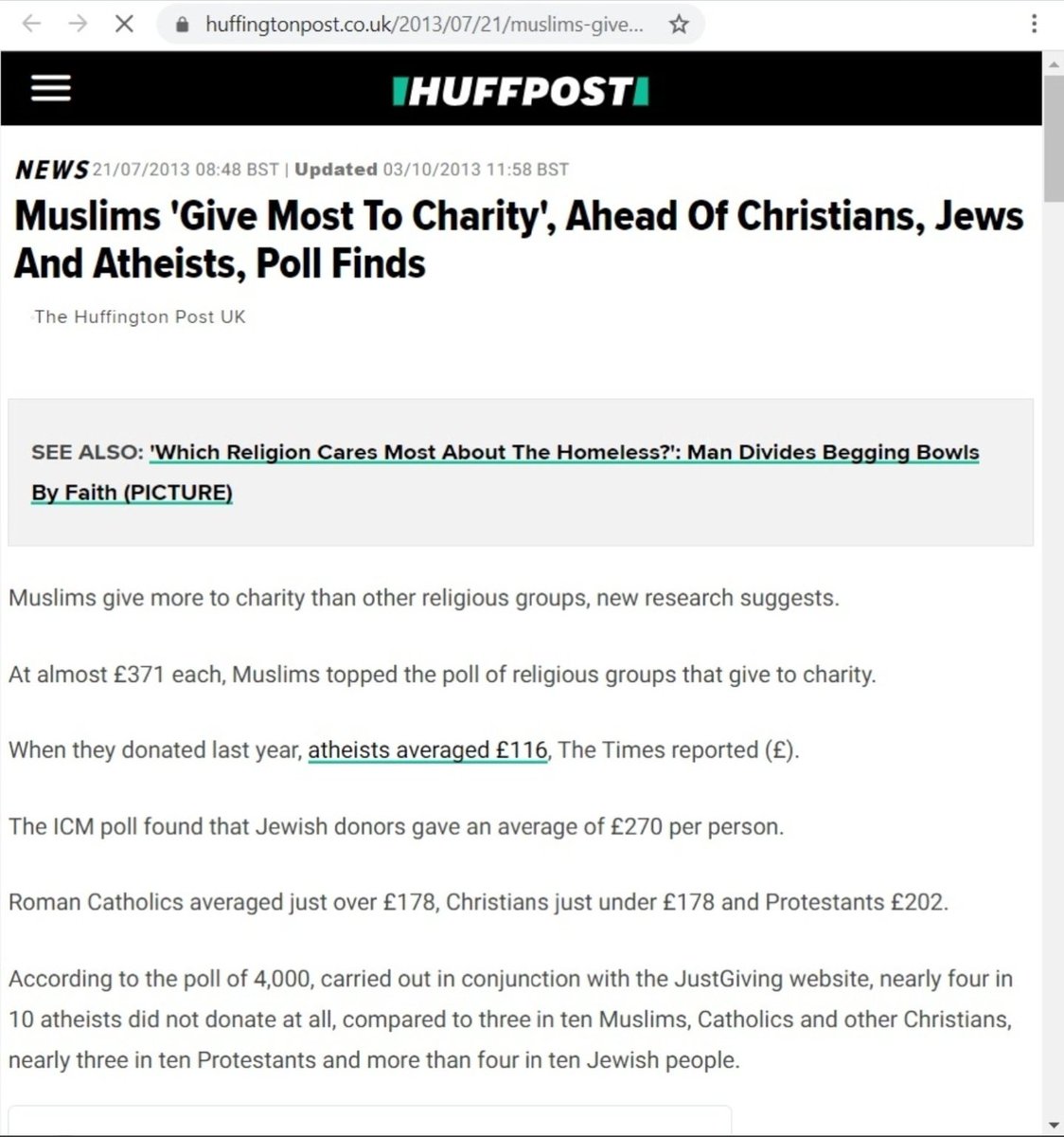 المسلمون هم الأكثر تبرعاً بأموالهم للمحتاجين
