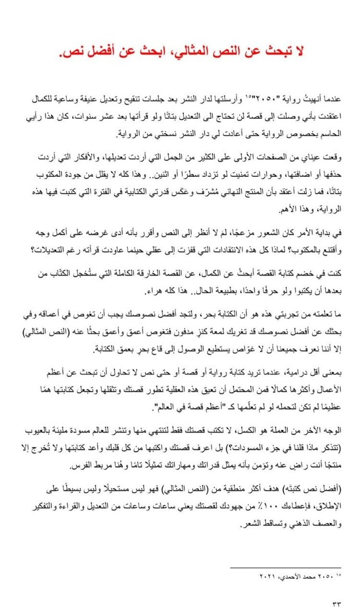 هدف "أفضل نص تستطيع كتابته" منطقي أكثر بكثير من هدف "النص المثالي" وفيه تحدي صعب لكنه ليس مستحيل، ويحفز بدل ما يُثبّط، وأقولك شيء ثاني؟