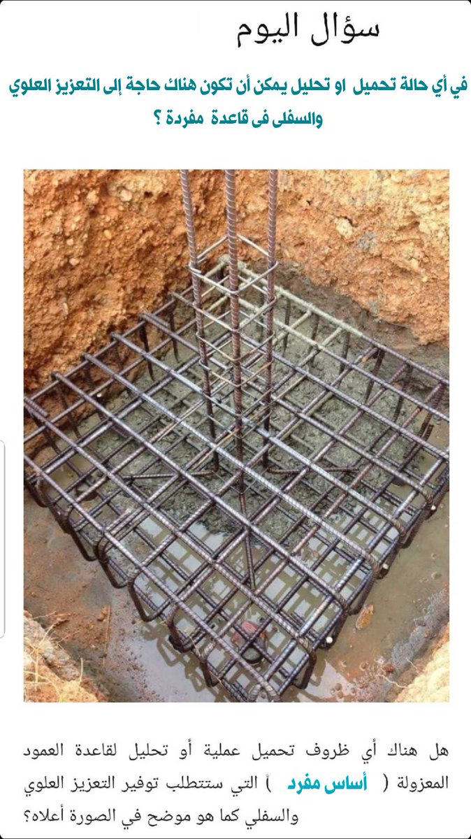 اساسات القاعدة المفردة إلا في حالات1 يتم اللجؤ الى تسليح منطقة الضغط في القواعد المنفصلة عندما تكون مقاومة الانحناء غير كافية ضد الضغط مما يؤدي إلى الحاجة إلى تعزيز إضافي في منطقة الضغط "مقطع ثنائي عندما يكون الاختراق غير متحكم والعمق صغير