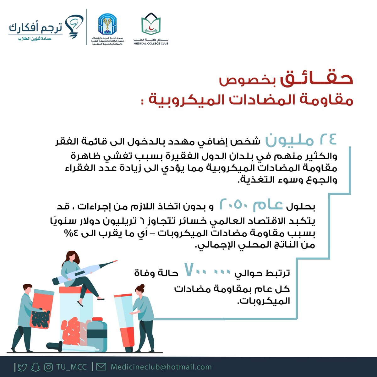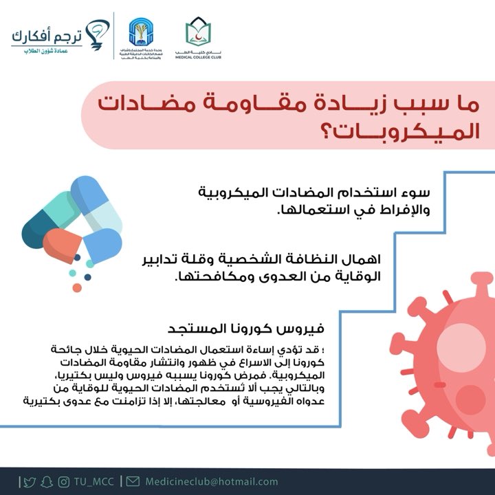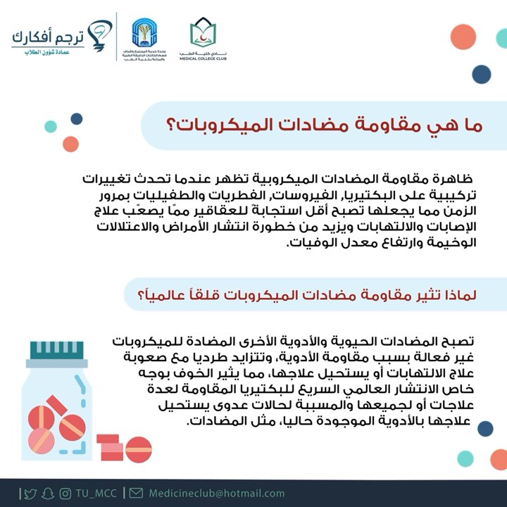 بمناسبة الأسبوع العالمي للتوعية بمقاومة مضادات الميكروبات ، يتعاون نادي كلية الطب #TU_MCC مع قسم الكائنات الدقيقة الطبيه والمناعة بكلية الطب/وحدة خدمة المجتمع لإستعراض هذه السلسة الخاصة بمقاومة المضادات الميكروبية.