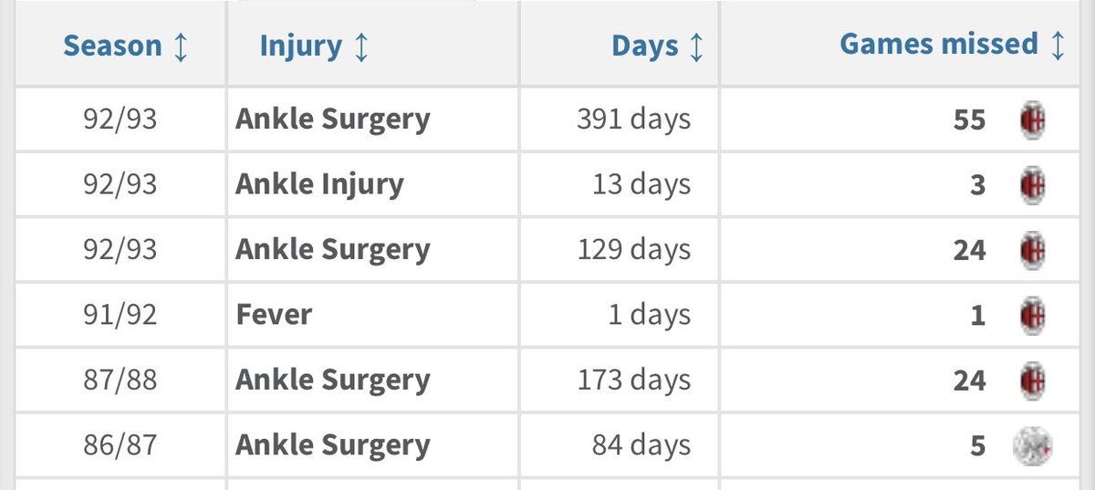 الأسطورة فان باستين أحد الذين عانوا من إصابة غضروف الكاحل وتوقف لسنوات بسبب الألم وإجراء أكثر من عملية. 🇳🇱