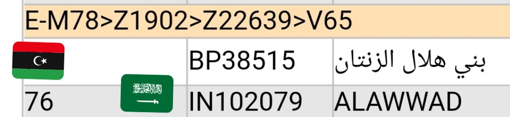 يسرني اعلان عينة بني هلال ليبيا من الزنتان على السلالة E-v65 رقم عينة BP38515 مبروك لصاحب العينة