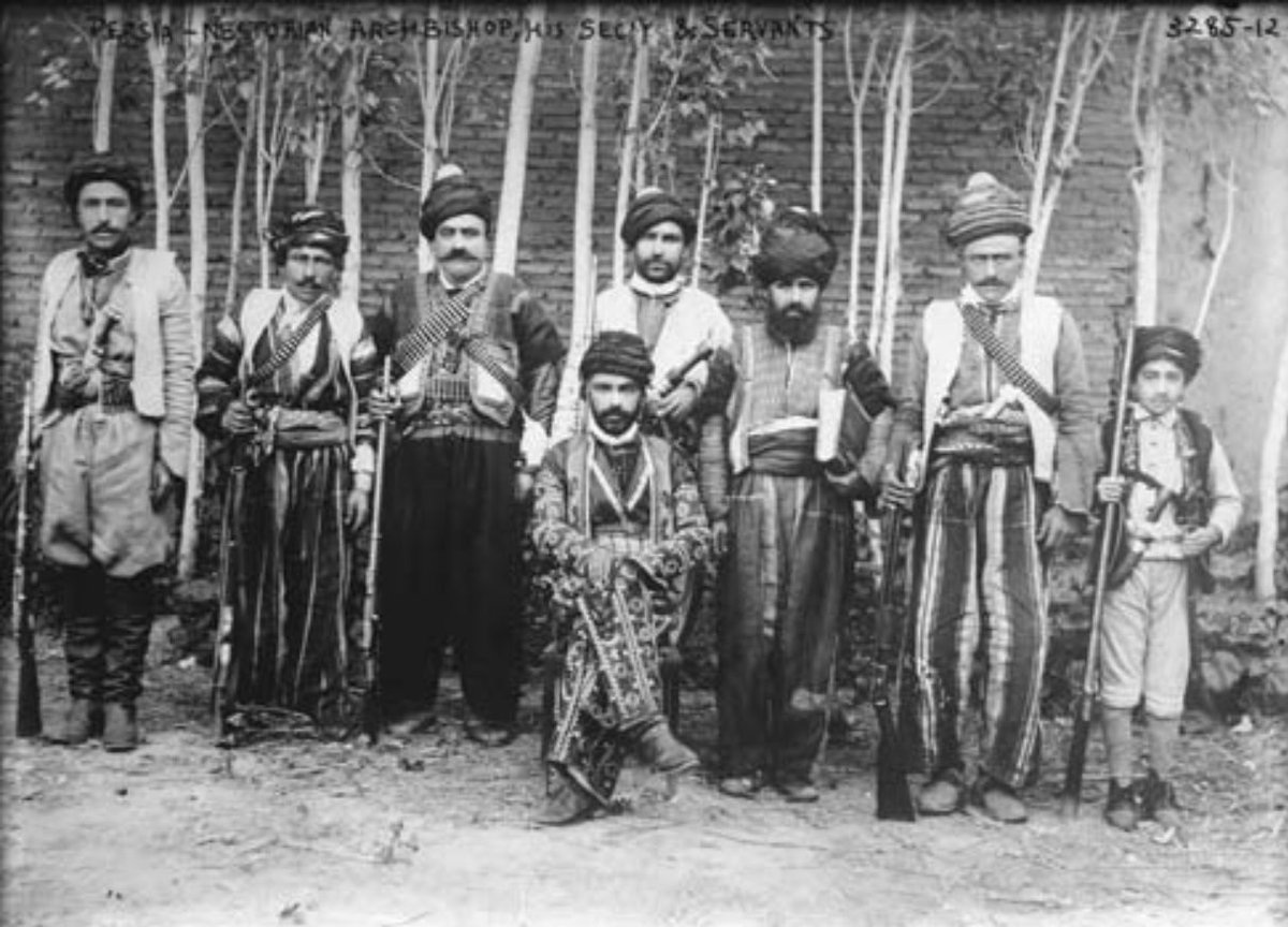 هذه صورة قديمة للنساطرة مدعين النسب الآشوري تعود للقرن التاسع عشر ، وهذا لباسهم الشعبي قبل أن يصبحوا فجأة