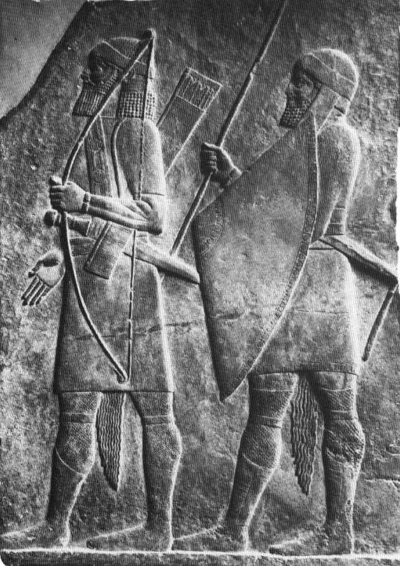 المقاتل الآشوري أثناء الحروب كان يرتدي إما قبعة أو خوذة أو يبقى عاري الشعر