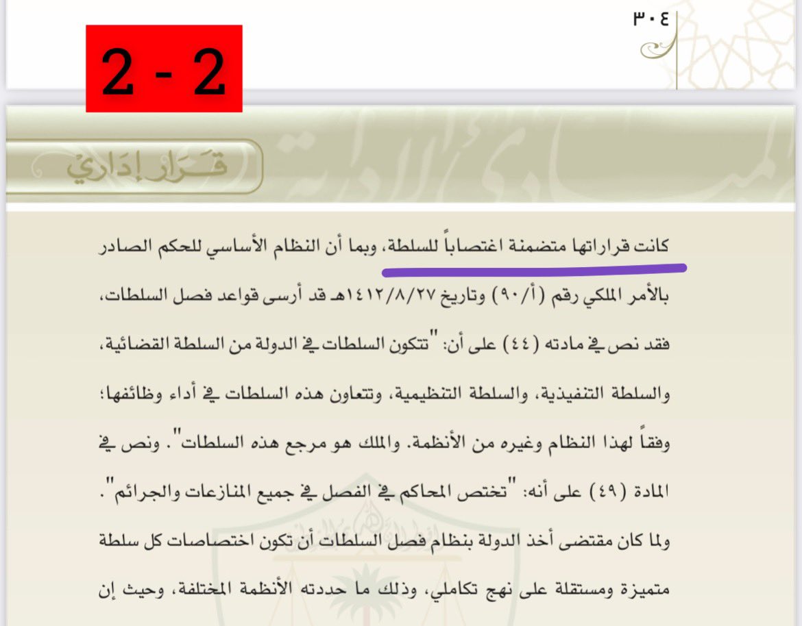 4/ ويمتد عيب عدم الاختصاص إلى السلطات الثلاث بالدولة وليس على نطاق الحكومة فقط، فيمنع اعتداء سلطة على سلطة كما بالحكم المرفق أعلاه، فلا يجوز للسلطة التنفيذية أن تمارس مهام السلطة التشريعية وتنصب نفسها مقام المنظم وإلا عُد ذلك اغتصاباً للسلطة كما أكد القضاء الإداري بالحكم المرفق.