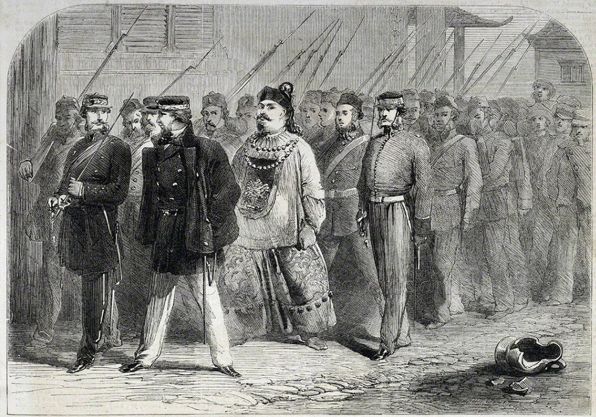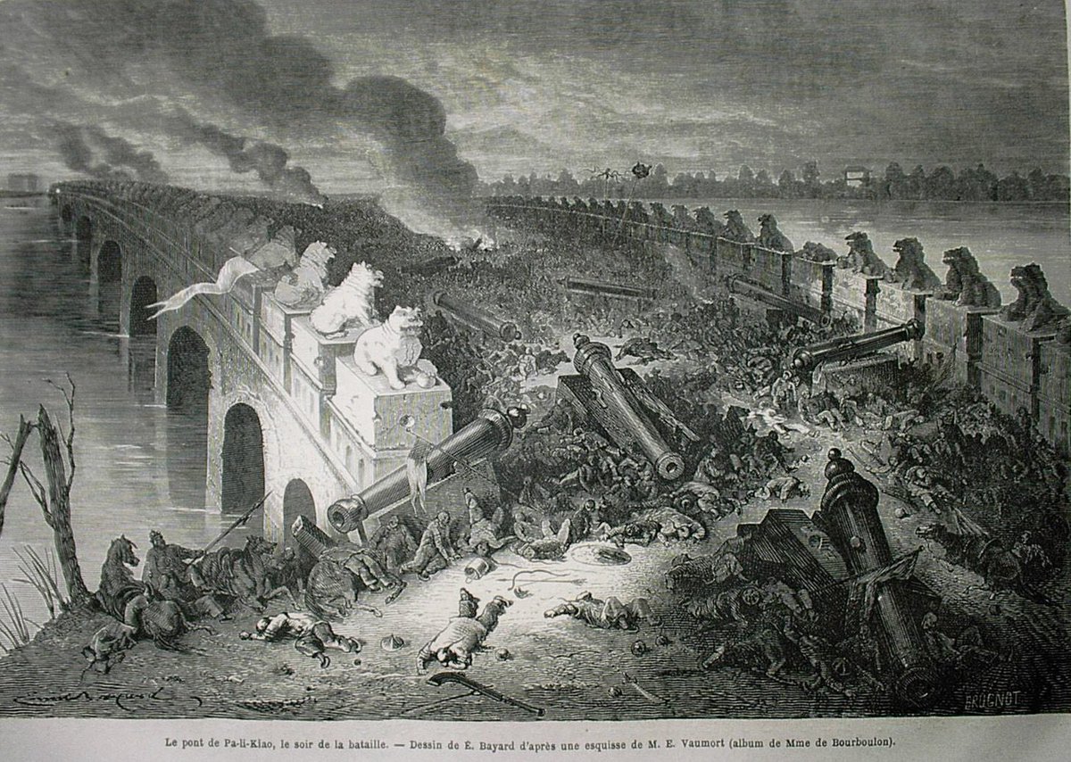 🔟 دخلت القوات البريطانية والفرنسية بكين ونهبت القصور والمتاحف والاثار واحرقت معالم الحضارة وقصر الامبراطور واجبرته على التوقيع على اتفاقيه من اهم بنودها التنازل عن جزيرة لصالح بريطانيا وفتح الموانئ بلا حدود ولاقيود للسفن البريطانية وبهذا فتح باب الادمان في الصين على مصراعيه