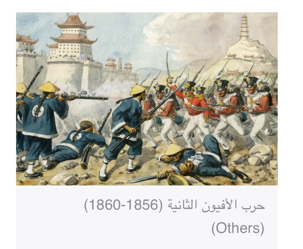 8️⃣ وفي عام ١٨٥٦م قامت الصين بتفتيش سفينه بريطانيه وادى الاشتباك الى انزال العلم البريطاني ومقتل مبشر بريطاني فاستغلت بريطانيا وفرنسا هذا الحدث لتحقيق السيطرة الكاملة واعلنت الحرب على الصين ( حرب الافيون الثانيه)