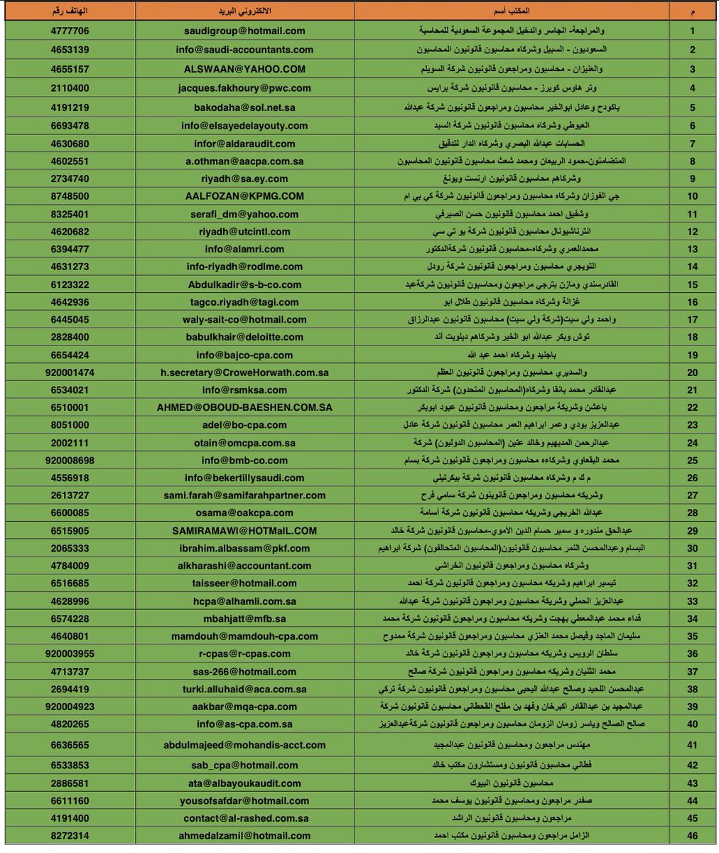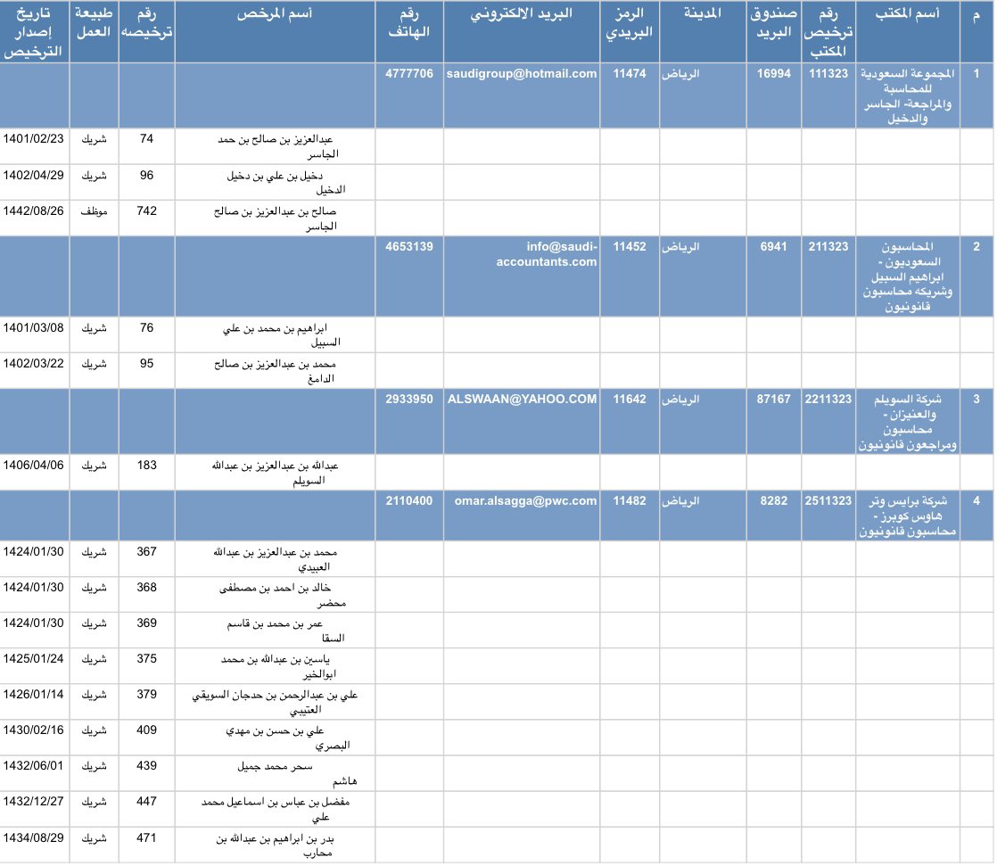 بيان بمكاتب المحاسبة القانونية المرخص لها بمزاولة المهنية من الهيئة السعودية للمراجعين والمحاسبين👇🏻