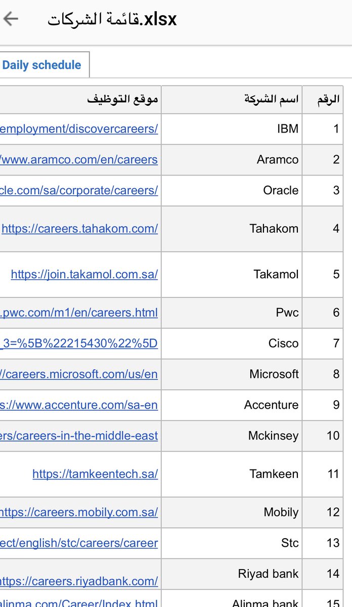 هذا الملف بالإكسل يوجد فيه ١٨٠٠ شركة ، تقدر تفتح الملف وتختار مدينتك وتخصصك وتبحث عن مكان الشركة وتروح لها مباشرةً او تتواصل معاها حسب ارقام التواصل وموقعها بالملف سهل الإستخدام بالفلتر تختار مدينتك وتشوف الشركات👇🏻