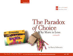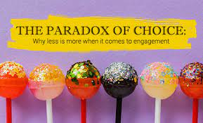 يمكن أن تؤدي الاختيارات التي يتم إجراؤها من مجموعات كبيرة إلى تفضيلات أضعف. يحدد توافر النقطة المثالية كعامل رئيسي يحدد متى ستعزز التشكيلات الكبيرة تفضيلات المستهلك ومتى تؤدي إلى إضعاف التفضيلات. كما ينص على النقطة المثالية هو أيضًا عامل رئيسي في اختيارات المستهلك.