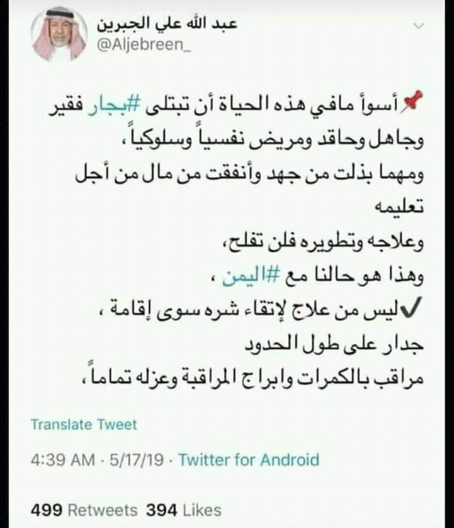 أتعلم حقا ما هو أسوأ شيء في هذه الحياة؟! أن تبني جدارا حدوديا طويلا ليعزلك عمن تزدريهم..