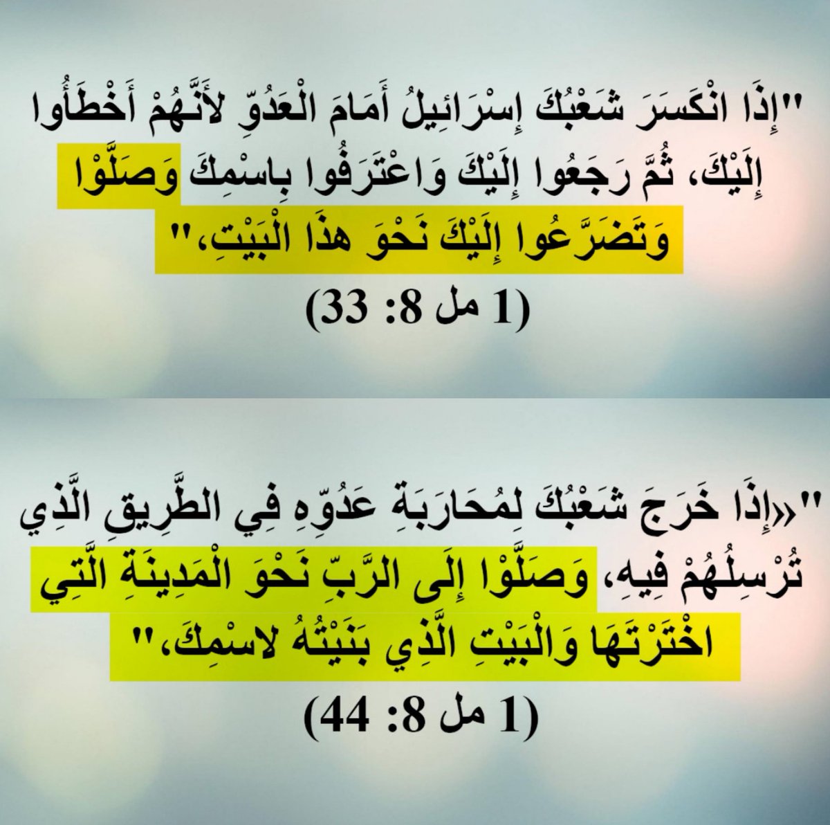 وصلوا وتضرعوا اليك نحو هذا البيت 1مل 8: 33