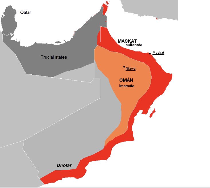 4️⃣ #ساحل_عمان مكون من سبع إمارات، حضرت فيه بريطانيا من خلال وكالة شركة الهند الشرقية، بتمثيل ونفوذ سياسي واقتصادي (١٨٢٠ -١٩٧١).