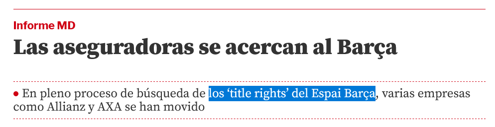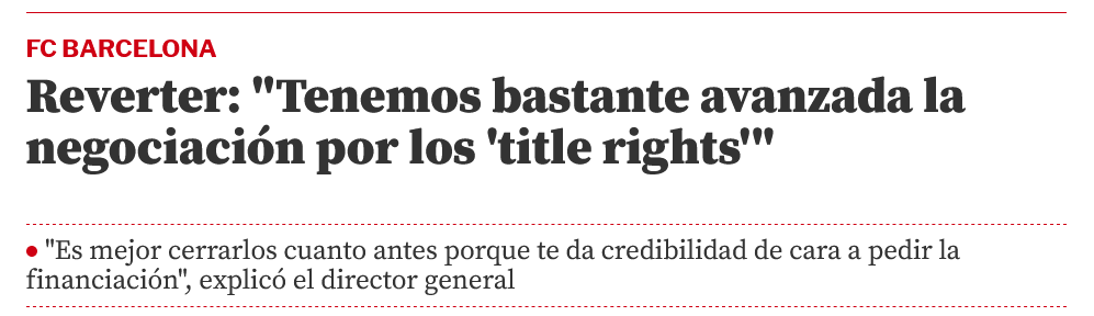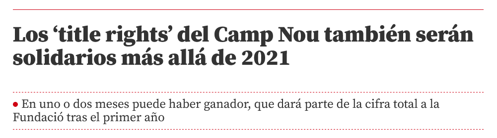 لذلك يجب إضافة اسم العلامة التجارية إلى إسم قائم الذات على سبيل المثال Allianz Camp Nou أو Camp Nou Allianz لأن تغيير الاسم تمامًا أمر مستحيل 👇