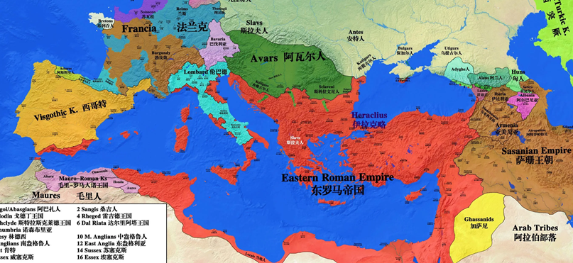9. وقرر هرقل أن يتخلى عن العادة الرومية التي كانت تمنع الإمبراطور من أن يقود جيشه وأصبح هو على رأس الجيش. ولكن قبل أن يجابه الفرس، كان عليه أن يصد الجبهة الغربية حيث شددت قبائل الآفار من هجماتها على أراض الإمبراطورية في البلقان.