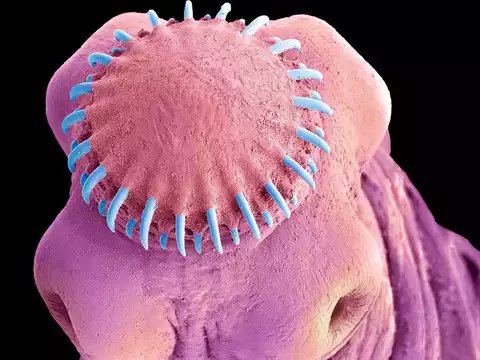 من الغرابة بمكان أن ترى إنسان يصاب بالدودة الشريطية الجنزيرية Taenia solium بماغه واتجد مئات الديدان الشريطية تغزو دماغه 💔..