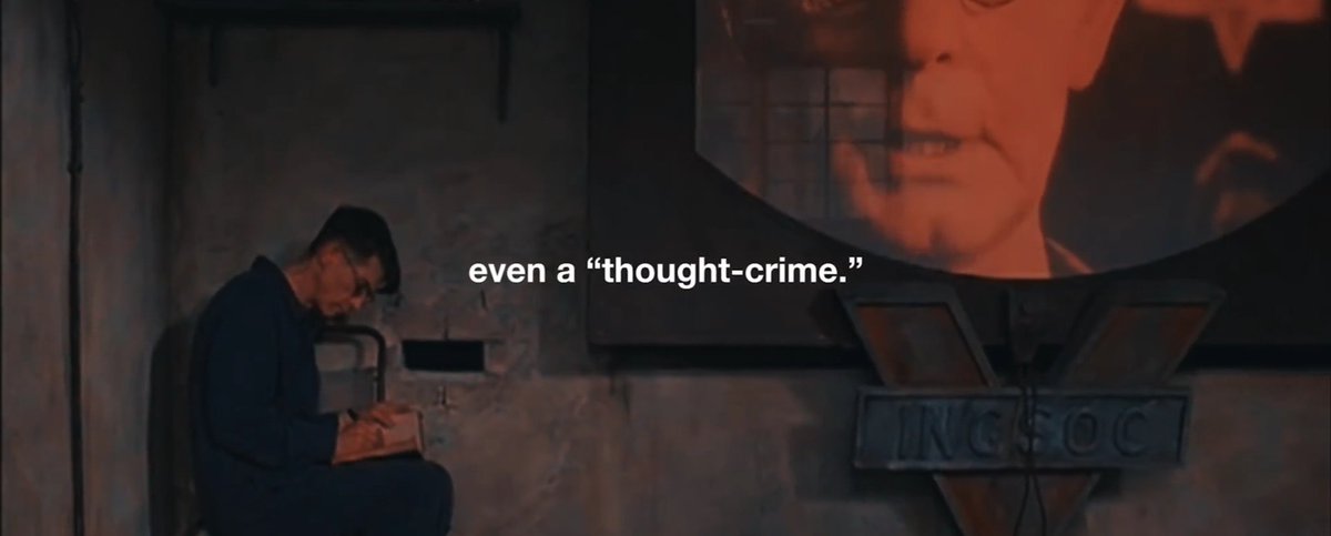 الحريه كانت معدومة في العالم الذي عاش فيه ونستون لدرجه حتى مرور فكرة خارج السرب تعتبر جريمة تعاقب عليها الدوله بالإعدام.