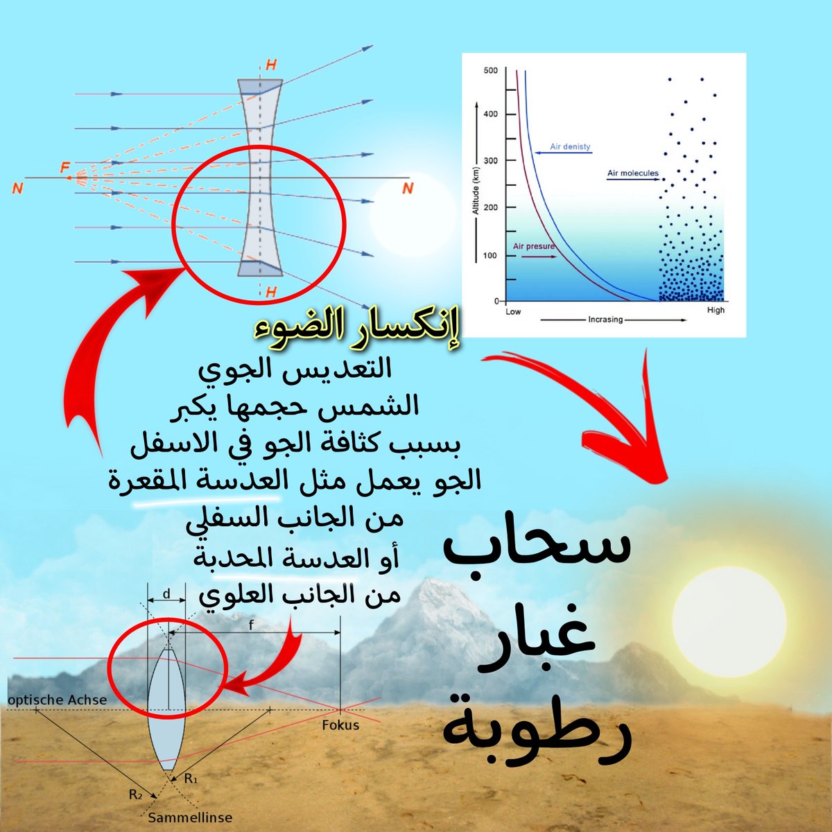 إنكسار الضوء، السراب، حيود الضوء، التعديس الجوي