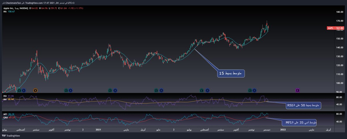 وهي اشارة ايجابية لمتوسط 15 مع الاسعار + تقاطع ايجابي من أي من الmfi او الrsi