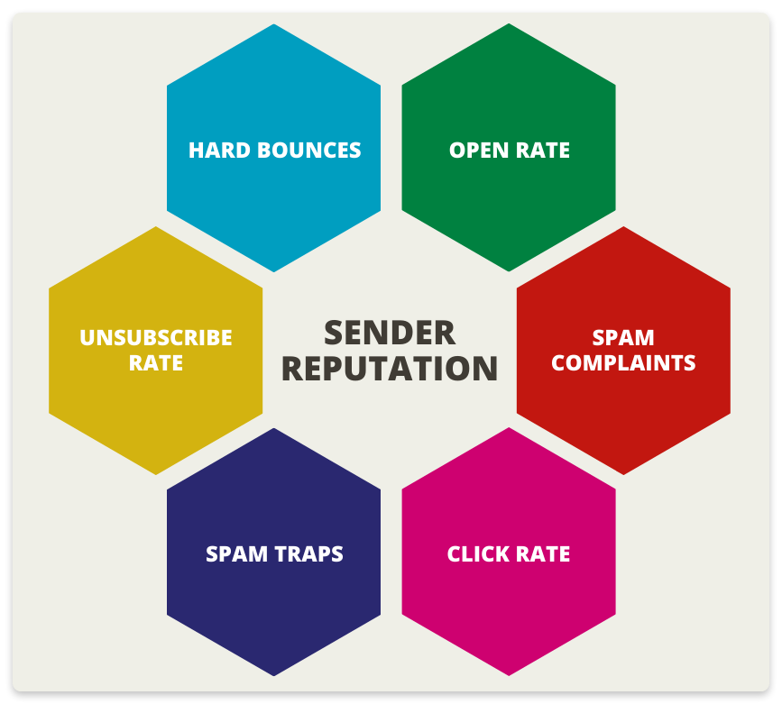 تأتي سمعة الإرسال السيئة غالبًا من التأثير التراكمي لنتائج مراسلاتك في خوادم الاستلام. وكما قد تتوقع، ستضر بسمعة الإرسال رؤيةُ نتائج سيئة ومعدل ارتداد مرتفع وفتح منخفض للرسائل وشكاوى كثيرة من الرسائل المزعجة خاصة لو كنت تقوم بحملات من نظام CRM.