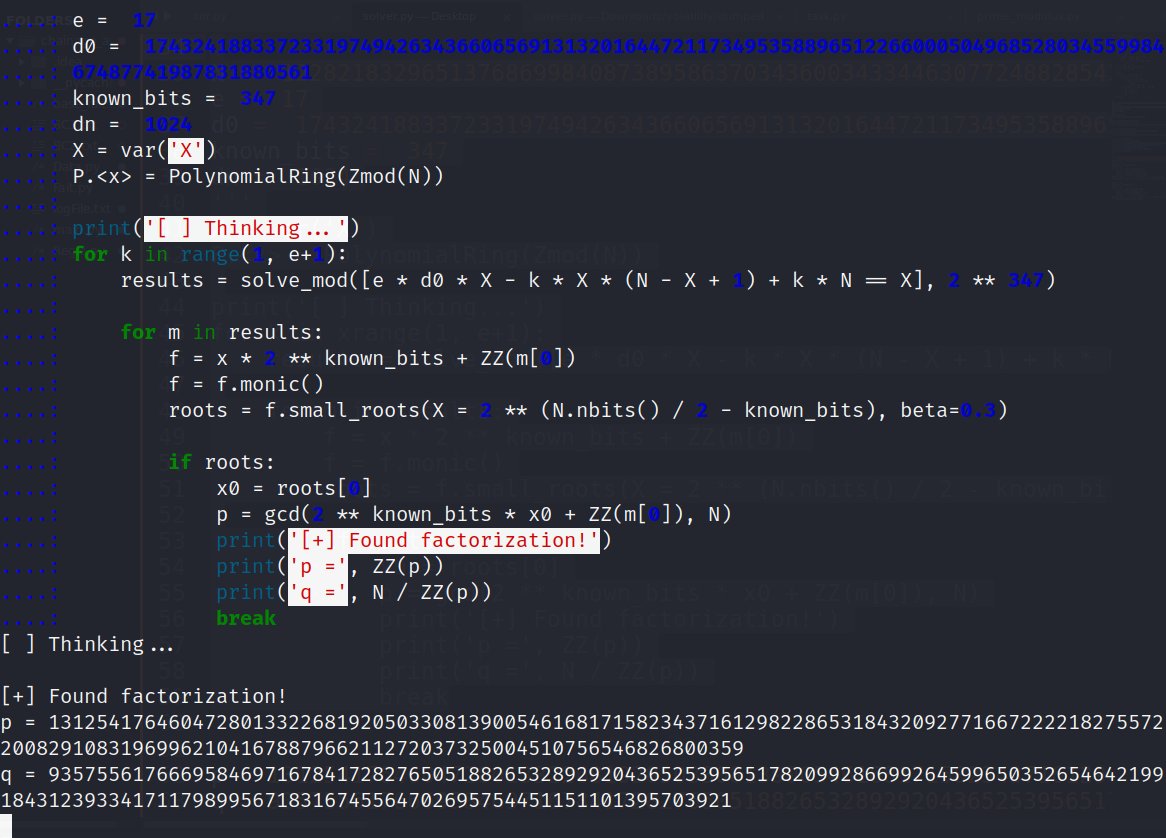 since we have 347 bits of private key d : the attack works because n is 1024bits and 347 > 1024/4 = 256