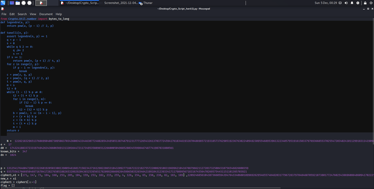 we do the same as part one but to calculate the modular square root we see that q % 8 = 1 so we use tonelli shanks algorithm.