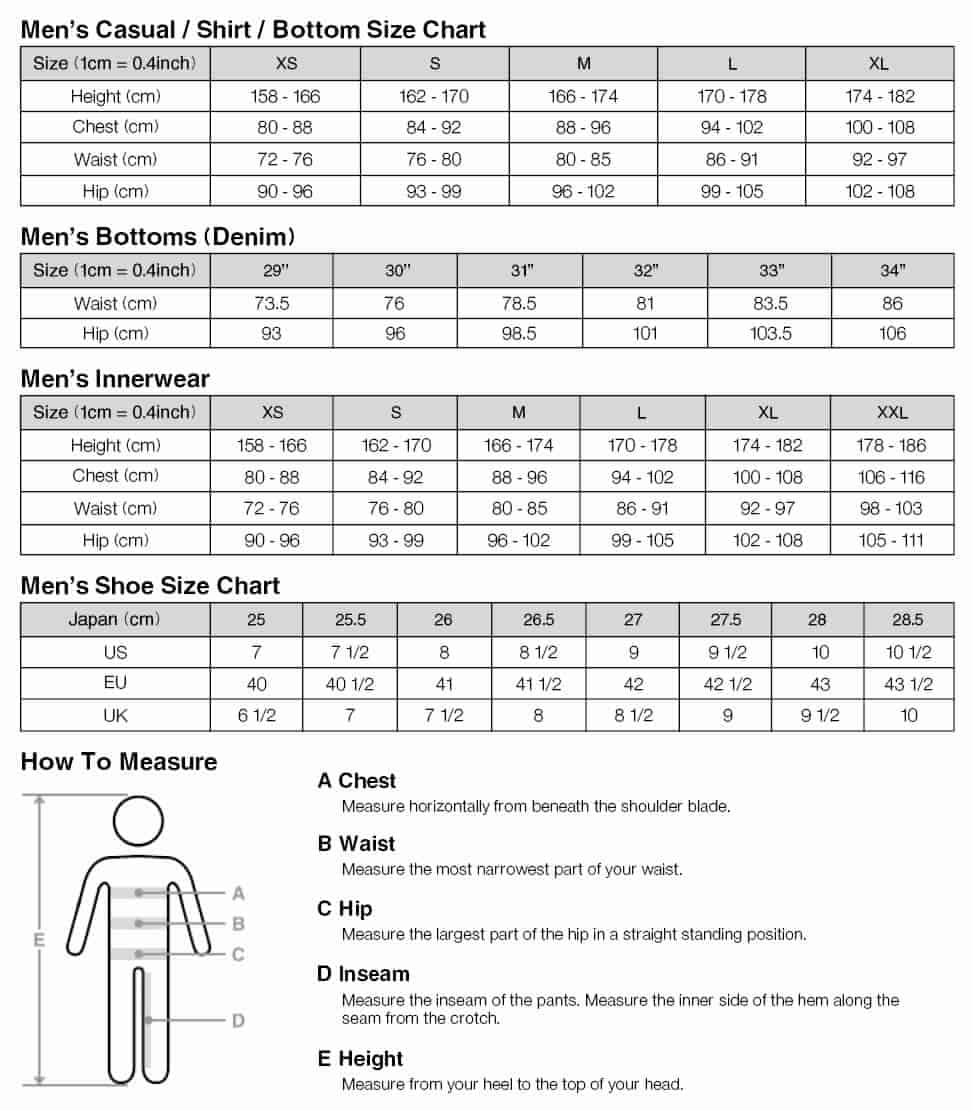تنقسم الملابس لعدة اصناف (تي شيرت – قميص – بنطالون – جاكيت – فستان – ملابس داخلية) وكل من هذه التصنيفات لها مقاسات خاصة بكل دولة