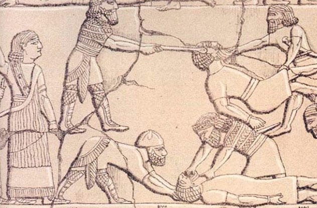 الاشوريين كانوا امه وحشية يقطعون اذان الاناث ويفقعون عيونهم ويشوهون وجييهمم ويمسكون طفلها المولود ويحرقونه حي قدام عينها ... ماهم اهل حضارة ولا تطور لعـ ـنة الله عليهم