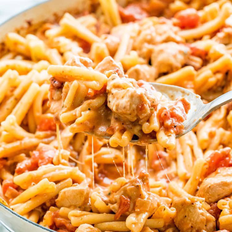 باستا دجاج بالكاجون في صحن واحد