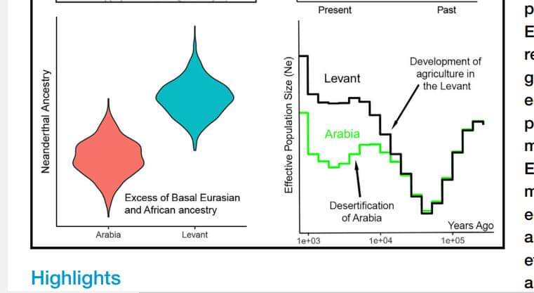 استبدال سكاني كبير** حدث في الجزيرة العربية و وجود أسلاف لسكان الجزيرة العربية تعود إلى صيادين لاقطين عوض المزارعيين النيوليثيين من الشام