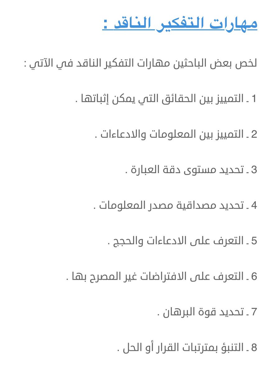 وتشرح دور المعلم والطالب في التفكير الناقد وبعض الاستراتيجيات