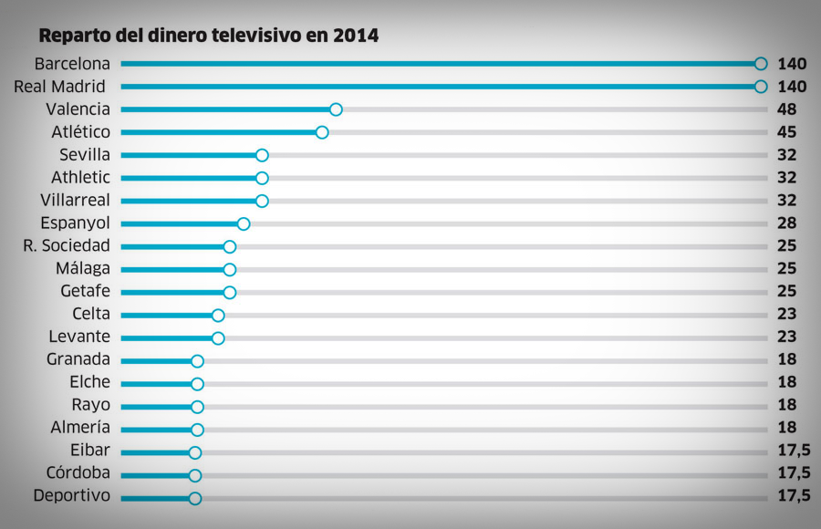 لم تكن مُضطر لدفع مبلغ كبير جداً لشراء حقوق بث الدوري الإسباني برمته من أجل بث لقاءي برشلونة وريال مدريد ، بل كان المطلوب منهم هو منح برشلونة وريال مدريد مبالغ محترمة ومنح الرابطة مبلغاً زهيداً للحصول على بقية المباريات