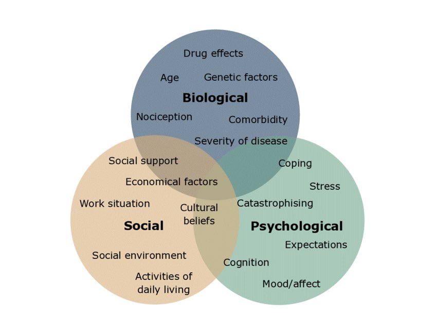 ٣) الألم تأثر عليه عوامل كثيرة لذلك عند محاولة تخفيفه من الخطأ التركيز على عامل واحد مثل العامل البيولوجي بالذات الألم المزمن.