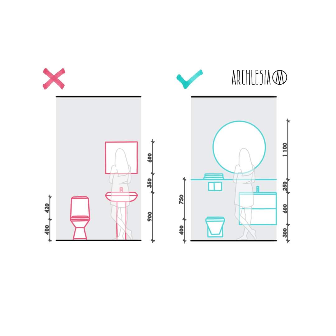 تصميم الحمام يخضع لبعض المعايير و الأبعاد القياسية..