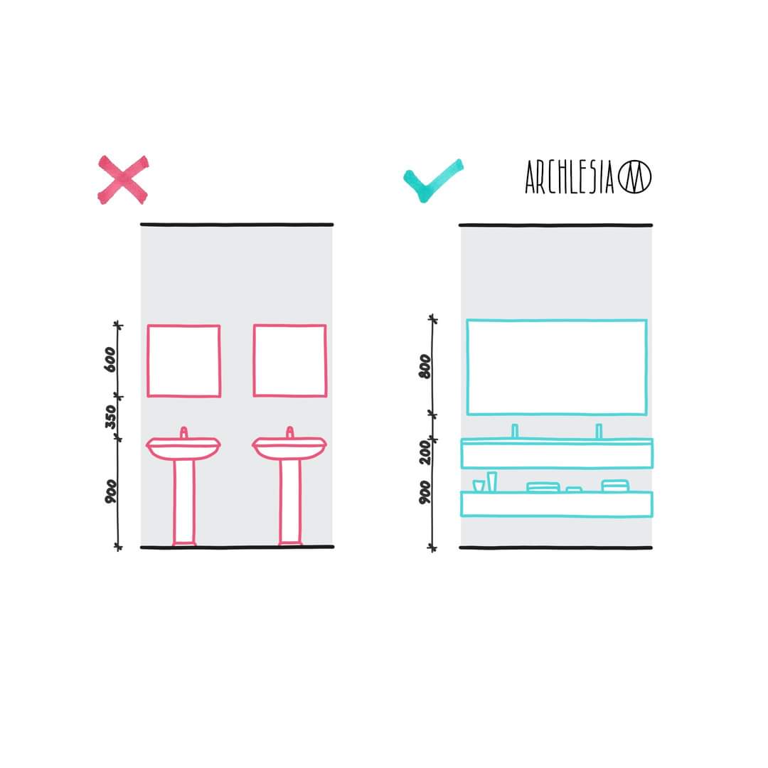 •عند وضع مغسلتين متجاورتين لا يجب فصلهما بل ربطهما بمستوى أفقي من الرخام.