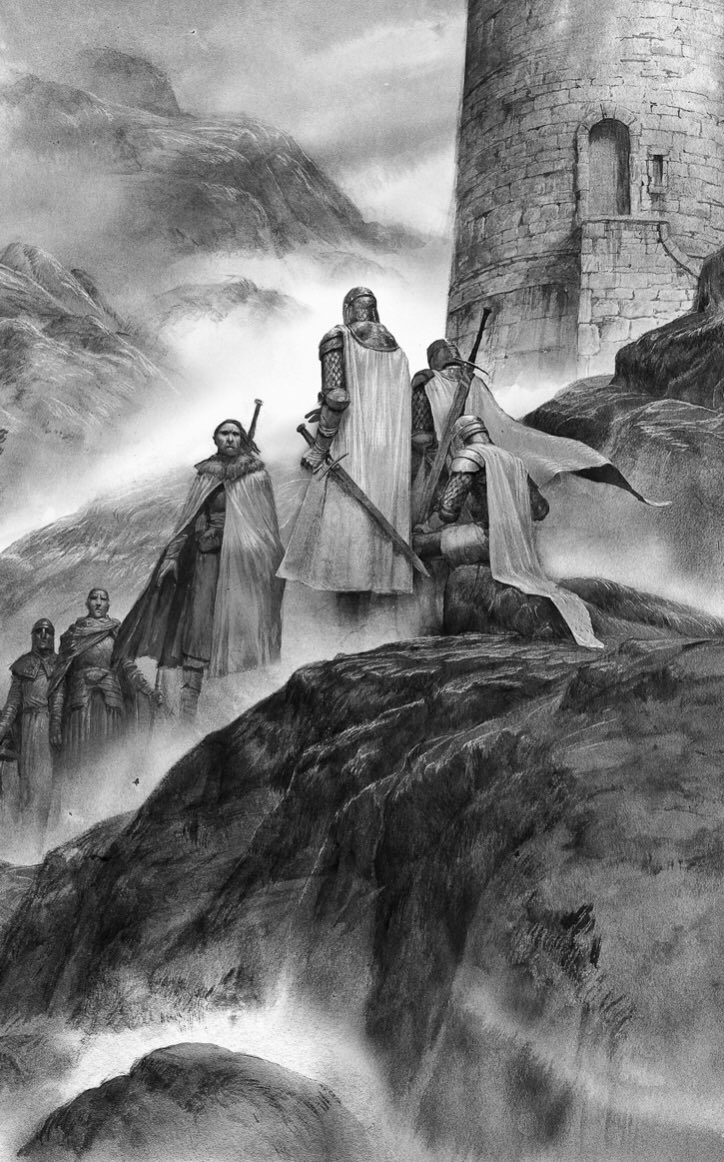 «"#والآن_يبدأ_القتال" ، قال سيف الصَّباح السير آرثر داين و أستلَّ فَجر من غِمده و حمله بكلتا يديه ، ليَسقُط عليه النُّور و تدبُّ فيه الألوان كأنه من الزُّجاج الشفَّاف»