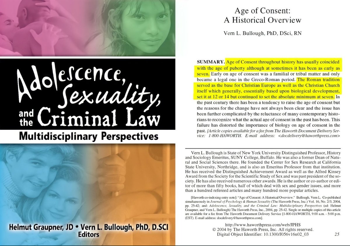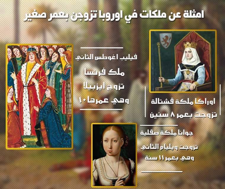 العالم الغربي والأوروبي في الماضي القريب كان يبيح قانونياً الزواج منذ التاسعة والعاشرة وما زال