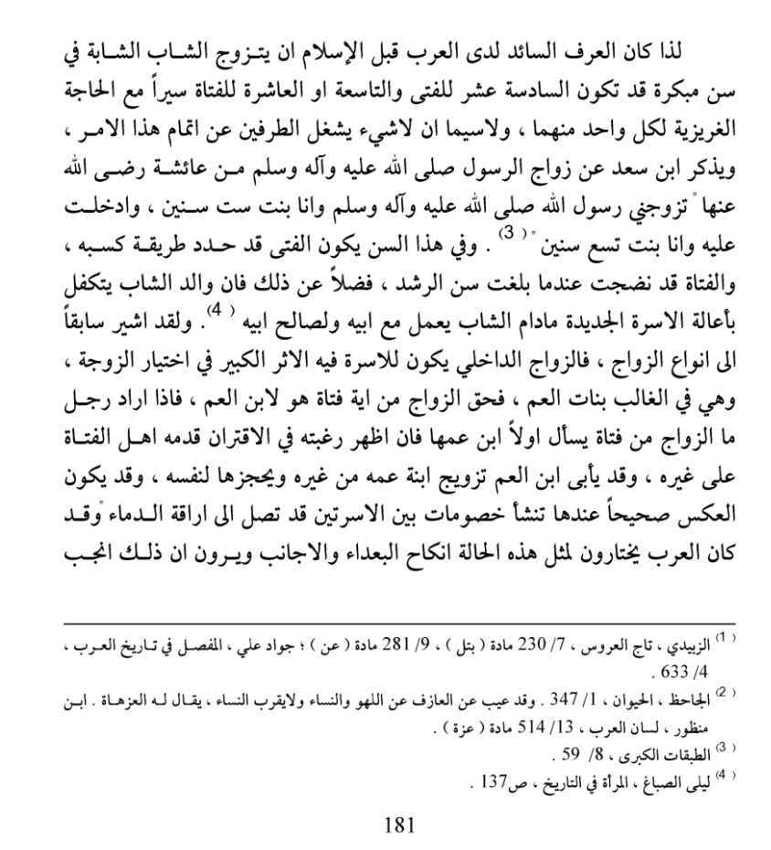 كان العرف السائد لدى العرب قبل الإسلام أن يتزوج الشاب في السادسة عشر والفتاة في التاسعة أو العاشرة