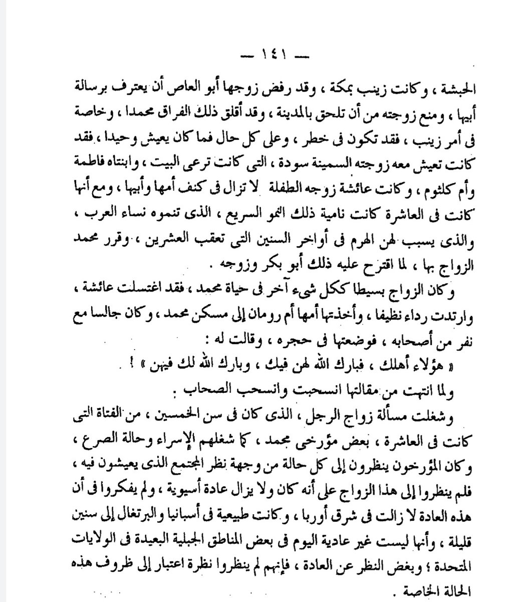 إنكار سن زواج السيدة عائشة يترتب عليه إنكار التاريخ بأسره