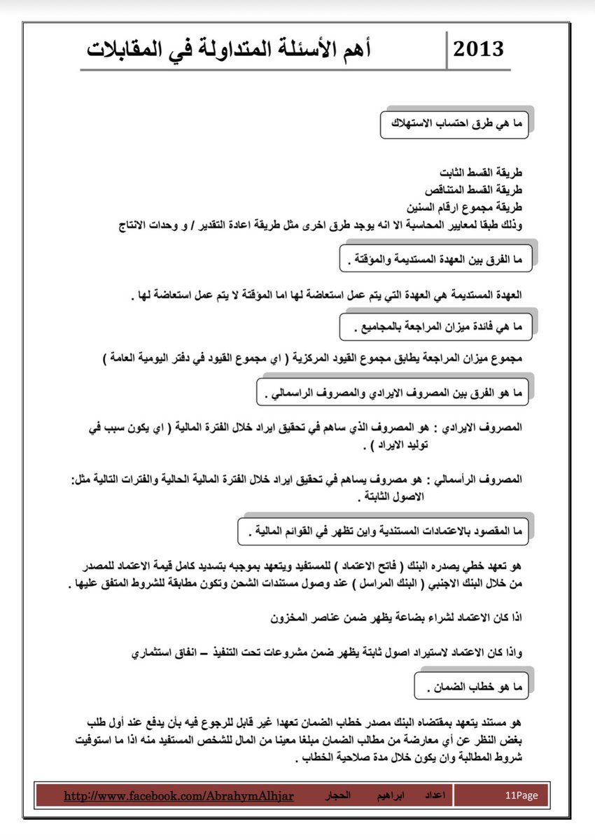 اسئلة مقابلة محاسبية المتوقعة وإجاباتها