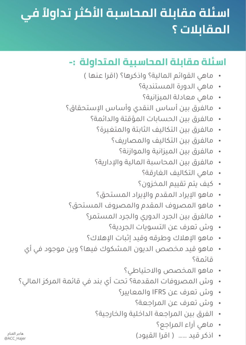 أكثر الأسئلة المتداولة في سوق العمل ✨ للمحاسبة | والمراجعة الخارجية | والزكاة والضريبة 🌠