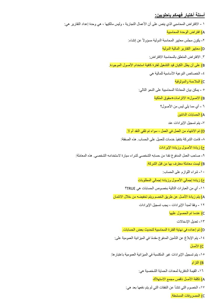 هنا أغلب الحسابات المتداولة بالشركات على هيئة سؤال وجواب
